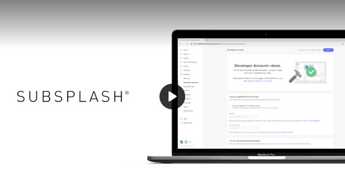 Fill out all the information on the Apple Developer Account page on your Dashboard, invite the "submit___@subsplash.com" email provided to your account, and request access to API keys.